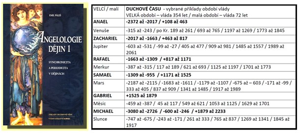 Vánoční čas. Čas světel, usebrání a sounáležitosti, kdy varhany a sbory z kostelních kůrů hlásají existenci nadpozemských světů. Kdy se podle legend otevírají cesty k pokladům - k otevřeným srdcím i k pradávným moudrostem, jako je třeba ta o střídání věků. Dokáže ale člověk, formovaný materialismem, uvěřit něčemu, co nelze změřit nebo vypočítat? Přijmout představu, že duchovní vývoj spolu s vývojem života a naší planety jsou ovlivněny vyšší mocí? Jak si však vysvětlit, že se v průběhu dějin nezávisle na sobě uplatňovaly stejné principy a formy, byly učiněny stejné objevy v různých částech světa? Odkud přicházejí impulzy? Co udává rytmus vývoje? Slovenský vědec, sofiolog RNDr. Emil Páleš, CSc., který vystudoval kybernetiku, zkusil současníkům odpovědět a spojil prastaré vědomosti s objektivními vědeckými fakty. V publikaci „Angelologie dějin“ prostřednictvím matematické statistiky dokládá působení sedmi planetárních inteligencí na běh dějin a duchovní schopnosti člověka. Známe je jako archanděly pod hebrejskými jmény: Gabriel, Rafael, Anael, Michael, Samael, Zachariel a Orifiel. Předávají jeden druhému vládu zhruba každých 354 let a kromě toho se periodicky střídají po 72 letech. Páleš je v malých obdobích rozlišuje pod názvy planet: Měsíc, Merkur, Venuše, Slunce, Mars, Jupiter a Saturn. Těchto sedm duchů času patří spolu s duchy lásky, harmonie, vůle, moudrosti, pohybu, formy, národů a strážných duchů do nebeské hierarchie. Nauku o ní najdeme ve starozákonních apokryfech i v judaismu či islámu. Sedm planet ovlivňuje i úseky lidského života. Kristova léta pod vlivem Slunce jsou polednem, vrcholem hory, na níž stoupáme. Puberta a menopauza, kdy dochází k hormonálním změnám, leží pod ním na stejné úrovni, atd. V evoluci Země a živé přírody se projevuje také 12 duchů harmonie, známých jako znamení zvěrokruhu. Ve dvanácti etapách se vyvíjí svět, embryo i živočišné druhy. Přestože Pálešova teorie cyklů obstála při interdisciplinárním kolokviu na akademické půdě, jeho dílo vyvolává kontroverze. Představa, že Vesmír nevznikl velkým třeskem, ale že na počátku bylo Slovo ve formě zpěvu vznešených bytostí, je těžko pochopitelná. Ovšem pro hloubavé lidi s fantazií může být setkání s angelologií požehnáním. Občerstvuje představivost a vyvolává úvahy třeba nad tím, že přehlédneme-li šanci, nabízenou nám ve správný čas na správném místě, může to mít pro budoucnost fatální následky. Což platí jak pro jedince, tak pro národy, státy, aliance… Pojďme se na chvíli změnit v nepopsaný list jako zem, obdarovaná čerstvou sněhovou pokrývkou, a nechme se inspirovat angelologií k vánočnímu rozjímání. GABRIEL. Bůh Sín, jemuž bylo zasvěceno Abrahámovo rodné město Úr. Archanděl Měsíce s tvořivou mocí Raka. Jako princip zhmotňování nám pomáhá ztotožňovat se s tělem. To on s lilií (měsíčním květem) v ruce zvěstuje Panně Marii těhotenství. Měsíční rytmus s přílivy a odlivy se promítá do reprodukce, pohybu vody a životních sil. Kondenzovanou podobou měsíčního svitu je stříbro. Umožnilo výrobu zrcadel, vznik fotografie a filmu. U zrcadlení a reprodukci jde o totéž: vytváření identických kopií. Na duchovní úrovni jde o schopnost tvořit obrazy. Pod gabrielskou vládou malovali Michelangelo i Rembrandt, vzniklo obrázkové písmo. Z malířských směrů je pro ni typický naturalismus (fotografické napodobování přírody) a v literatuře romanopisectví (předchůdce filmového vyprávění). V kambriu dala vzniknout živočichům s vnější kostrou, ulitám a lasturám. V 16. a 17. století zrodila baroko s motivy lastur a akcentem na útulnost prostor, v módě jsou perly a těhotenský střih šatů. S Gabrielem souvisí matriarchální společnosti a období královen. Tíhnutí ke hmotě se promítá do materialistické filozofie a rozkvětu fyziky. Pokud ale ve hmotě uvíznete, na duchovní úrovni vás čeká věčný spánek, stejně jako zkameněliny z dob kambria. Nenechme se strhnout hmotnými statky a věnujme vitalitu vyšším cílům. Jen tak se otevře oko duše. RAFAEL. Anděl jara a božský léčitel, řecký Hermes, jehož hůl je lékařským znakem. Uzdravování je jarní, regenerační proces, stejně tak inovace a budování. Římané ho znali jako posla bohů Merkura, inspirátora náboženských poutí, turistiky, dopravy. V rafaelských obdobích působili Hippokrates, Galen a Avicena, dochází k medicínským objevům. V mýtech je Opeřeným hadem, zakladatelem civilizací. Had na stromě poznání, z něhož pojedli Adam a Eva, se jmenuje Lucifer (Světlonoš). Ztrátou nevědomosti získal člověk vlastní světlo vědomí, které souvisí s centrální nervovou soustavou. Ta se vyvinula do struktury stromu. Rafael inicioval vznik intelektuálních vědomostí, hláskového písma, abecedy, lingvistiky a botaniky. Slova mají kmeny a kořeny stejně jako rostliny a větná skladba se rozvíjí ve stromových strukturách. V rafaelském 11. a 12. stol. se zakládaly v Evropě první univerzity a v Číně vynalezli knihtisk. Gotiku charakterizují vysoké, štíhlé, špičaté tvary a žebroví. Jde o obdobu obřích kapradin a hrudního koše, které se vyvinuly v karbonu za působení znamení Blíženců a Panny. Blíženci dali vzniknout dvoustranné symetrii u živočichů a díky Panně se vše živé začalo vyvíjet současně, v rytmu. V hudbě je rytmus Panny rytmem tlukotu srdce. Intelekt s důrazem na rozum se promítl v Aristotelově logice a v osvícenství, typickým literárním směrem je pichlavá satira. Démoni merkurské sféry nás nutí povyšovat intelekt tak, až ztratí spojení s realitou a změní se v prázdná